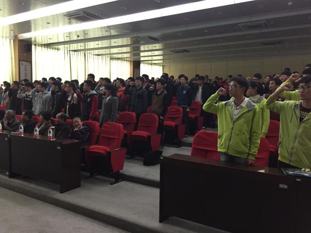 在爱国精神的感召和鼓舞下,同学们踊跃举手、走上讲台畅谈了自己对“心系爱国,做有志青年”的心得和体会,以PPT形式展示了一年来开展“春晖行动”志愿服务和善行义举,举起右手作出“要以国家和民族的核心利益为基础和着眼点,采用合法的方式,维护国家尊严和民族利益……”的承诺,并将承诺写在横幅上,表达践行爱国精神的决心。