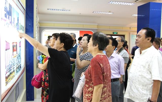 校史馆、古籍室和日新月异的校园……校友们看得兴致勃勃。每到一处,大家都要停下来,合影留念。校史馆内,一张张记录学院历史的老照片引得校友们驻足观看,在每一块展版前流连,看到展版上自己熟悉的景象时,他们都很激动,纷纷围上前来热烈地追忆当年在学校的幸福时光,快乐的笑声感染着身边的每一个人。
