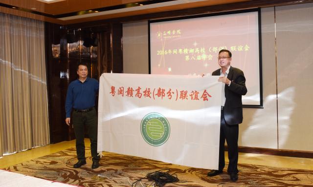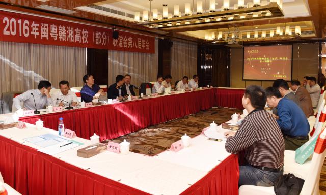 11月7号上午,由三明学院承办的2016年闽粤赣湘高校(部分)联谊会第八届年会暨“十三五”高等教育改革发展和质量保障研讨会在三明沙县君华大酒店召开。三明学院、泉州师范学院、莆田学院、龙岩学院、武夷学院、宁德师范学院、韩山师范学院、嘉应学院、惠州学院、赣南医学院、湘南学院等来自粤闽赣湘的11所高校校领导齐聚一堂,以“‘十三五’高等教育改革发展和质量保障研讨会”为主题展开研讨。校党委赖锦隆副书记主持会议。