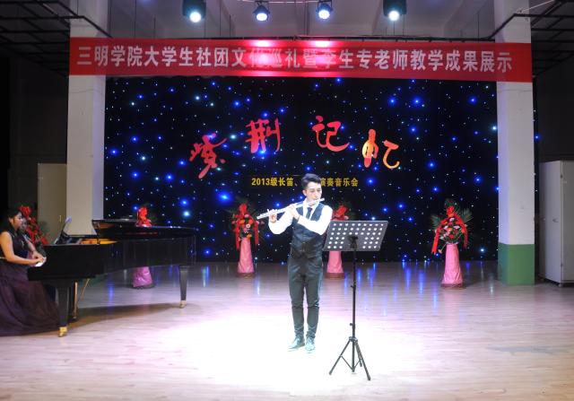 11月22日晚,以“紫荆记忆”为主题的教育与音乐学院2013级长笛、竹笛演奏音乐会在泊雅楼五楼演艺厅举行,并作为三明学院大学生社团文化巡礼暨李生专老师教学成果展示。