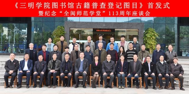 致用书院建院143周年、全闽师范学堂创立113周年之际,“中华古籍保护计划成果”——《三明学院图书馆古籍普查登记图目》(以下简称《图目》)一书正式发行。12月12日下午,《图目》首发式暨纪念“全闽师范学堂”113周年座谈会在图书馆举行。