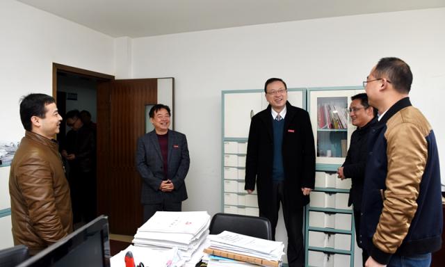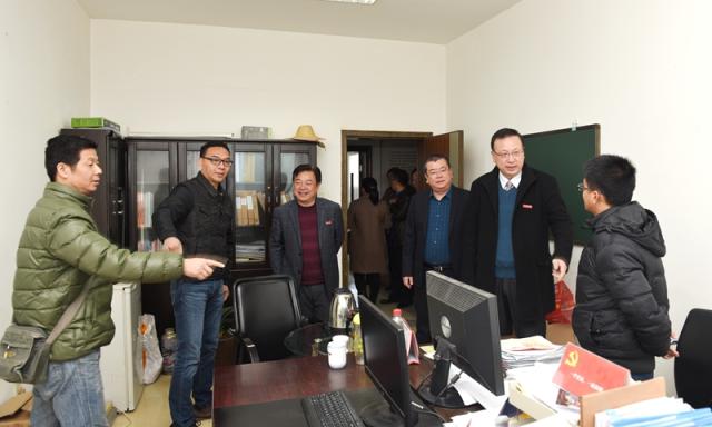 2月14日上午,校领导刘健、江芳俊、陈晓明、张君诚走访看望学校机关各部门教职工。