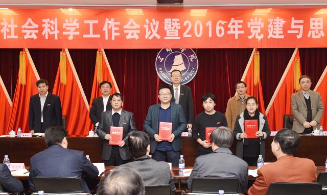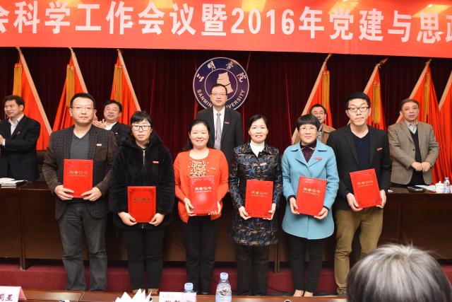 会议传达学习了省、市社科联会议精神,部署了我校2017年哲学社会科学工作,表彰了“2016年党建与思想政治工作理论研讨优秀论文”和“2016年新闻宣传工作先进单位”。据悉,2016年党建与思想政治工作理论研讨,共收到论文107篇,经专家评委严格评审,评出论文一等奖4篇,二等奖7篇,三等奖12篇,优秀奖22篇,优秀组织奖6个;2016年新闻宣传工作,共评出先进单位6个,通报表扬单位10个。