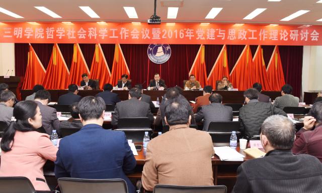 3月22日上午,我校在行政楼八楼会议室召开社会科学工作会议暨2016年党建与思想政治工作理论研讨会。校领导刘健、赖锦隆、江芳俊、陈晓明、詹学齐出席。会议由校党委副书记赖锦隆主持。