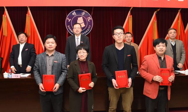 刘健校长代表校党委对受表彰的集体和个人表示祝贺。他指出,在全国上下深入学习贯彻党的十八届六中全会和中共中央国务院《关于加强和改进新形势下高校思想政治工作的意见》精神,贯彻落实习近平总书记系列重要精神特别是在全国高校思想政治工作会议上重要讲话精神之际,召开三明学院哲学社会科学工作会议暨2016年党建与思想政治工作理论研讨会,本着求实、求新、求真的宗旨,研究探讨新形势下加强和改进高校哲学社会科学与党建、政工作的新思路、新方法、新举措,总结和展示学校哲学社会科学与党建、思想政治工作的实践经验和理论研究成果,对落实立德树人的根本任务,提高党建与思想政治工作科学化水平,促进学校加快“转型、提质、增值”发展和教育综合改革,具有十分重要的意义。