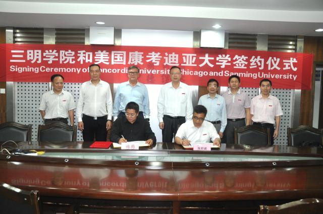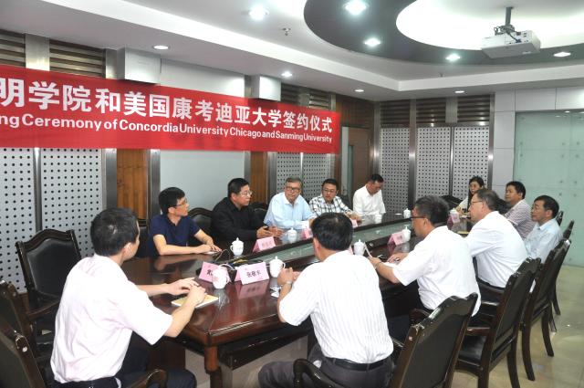 在双方人员的共同见证下,张君诚副校长与康考迪亚大学中国地区授权人蒋勇董事长签署了校际合作备忘录。