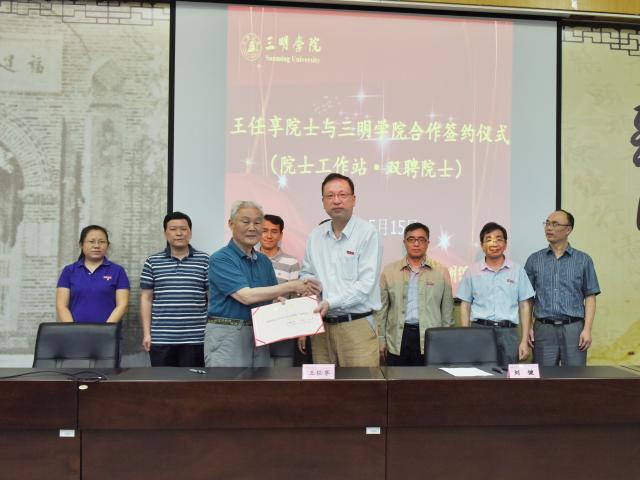 报告会结束后,刘健校长代表我校与王任享院士签订“三明学院院士工作站”建站协议以及“双聘院士”聘任协议,并为王任享院士颁发了双聘院士聘书。王院士听取了刘健校长关于三明市院士、博士创新创业联盟的筹备情况的介绍,非常赞赏三明学院发挥地方高校的智力优势为三明经济社会发展作出的贡献,欣然接受了担任三明市院士、博士创新创业联盟顾问的邀请。据悉,王院士将其受聘期间的技术咨询费用自愿捐赠给三明学院教育发展基金,并从中设立王任享院士奖教奖学基金。