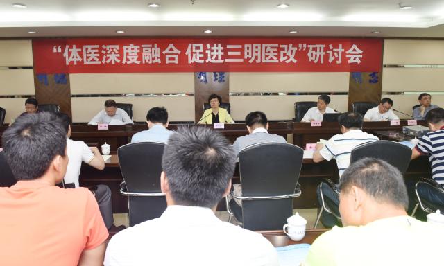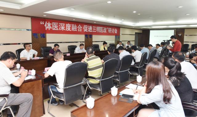市发改委、卫计委、体育局、人社局、三明市第一医院、三明市中西医结合医院、三明医学科技职业学院、九三学社三明市委、海西三明生态工贸区等相关单位负责人,校教务处、科研处等部门负责人,体育学院教师代表参加了研讨会。