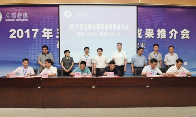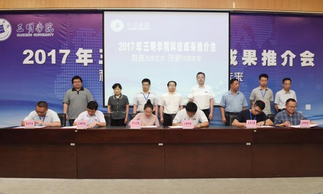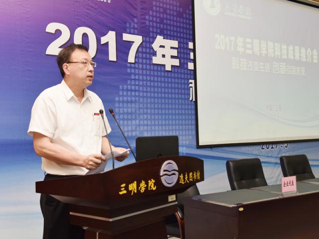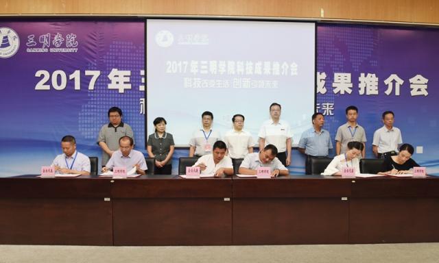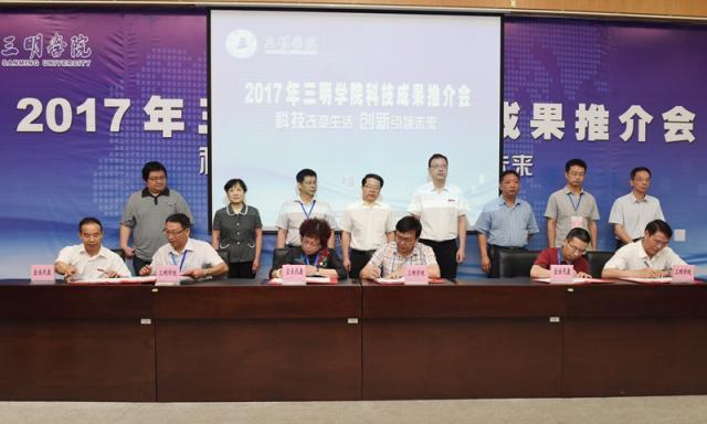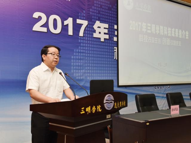 5月27日,2017年三明学院科技成果推介会在图书馆报告厅举行,福建省科技厅党组成员、省知识产权局局长颜志煌,三明市人民政府程鹏鹰副市长,校领导刘健、张君诚,省知识产权局专利管理处、三明市各县(市、区)人民政府、科技局、发改局、经信局等相关单位负责人、企事业单位代表170余人参加会议。会上共征集28条合作意向,现场签约15项,签约涉及的项目投资总额达1.6亿元。