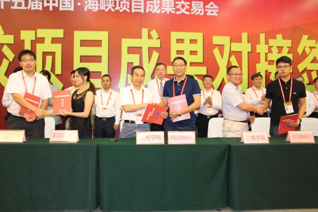 在教育部科技发展中心、省教育厅主办的高校科技项目成果对接签约仪式上,机电工程学院的高浩老师的“冶金轧辊数字化成型技术研究”项目成果与三明市冶金机械轧辊有限公司对接签约;资源与化工学院苏志忠老师的“全氟烷基乙基丙烯酸酯制备及工业化应用”项目成果与泰禾集团三农化学股份有限公司对接签约;建筑工程学院刘纪峰老师的“年处理30万吨尾矿资源高效清洁利用项目”项目成果与厦门兑泰实业有限公司对接签约。