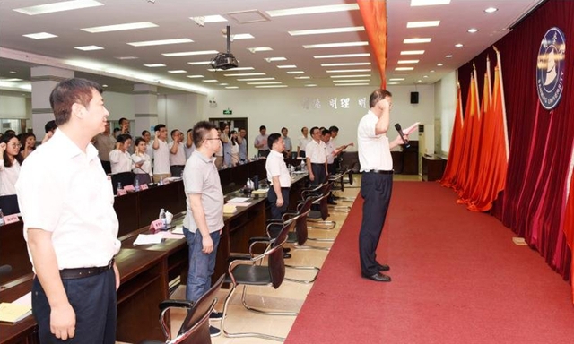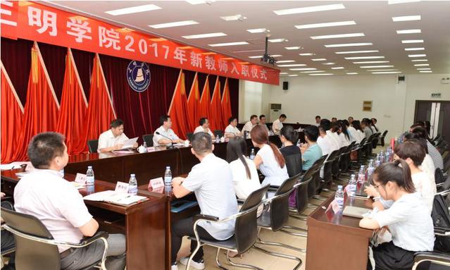 9月5日下午,我校在综合楼八楼会议室举办2017年新教师入职仪式暨座谈会。校领导兰明尚、刘健、赖锦隆、廖景榕、江芳俊、吴龙、詹学齐,以及党政办、学工部、工会、人事处、教务处、科研处、后勤管理处等相关部门负责人出席,仪式由校党委副书记赖锦隆主持。60名新教师在刘健校长的领誓下,举起右手庄严宣誓,立志成为一名光荣的人民教师。
