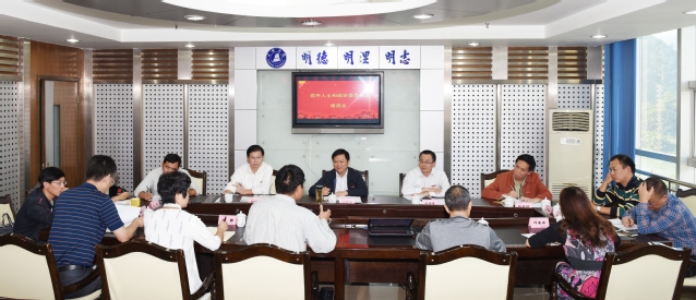 10月24日下午,我校在行政楼六楼会议室召开“党外人士和政协委员代表座谈会”。校党委书记兰明尚、副书记赖锦隆出席会议。