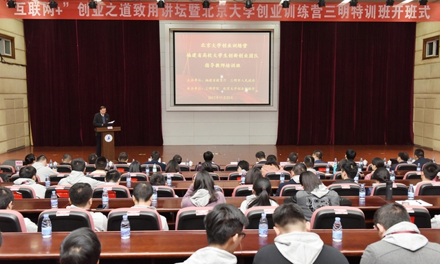 11月23日,国家“千人计划”创新人才、北京大学教授陈东敏莅临三明学院,为三明学院致用讲坛作首个主旨报告,拉开北京大学创业训练营三明特训班的序幕。教育厅学生处处长谢友平,校领导刘健、赖锦隆、廖景榕、张君诚、吴龙、詹学齐,北京大学创业训练营CEO王健,知名企业家,省内86所高校的创新创业师生代表,以及我校处级以上干部、各系主任、全体辅导员和学生代表,共计500余人参加了活动。