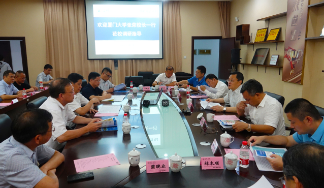 8月2日下午,厦门大学校长张荣一行莅校考察交流。三明市人民政府市长余红胜,校领导兰明尚、刘健、张君诚陪同考察。