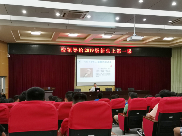 为深入学习贯彻习近平总书记在学校思想政治理论课教师座谈会上重要讲话精神,落实中共中央办公厅、国务院印发《关于深化新时代学校思想政治理论课改革创新的若干意见》,带头推进思政课创新、带头提升思政课质量,从9月9日到9月19日,校领导兰明尚、刘健、赖锦隆、廖景榕、张君诚、吴龙、詹学齐、谢松明、林建伟分别登上思政课讲台,为2019级新生讲授“第一堂思政课”。
