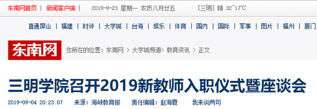 【东南网】三明学院召开2019新教师入职仪式暨座谈会