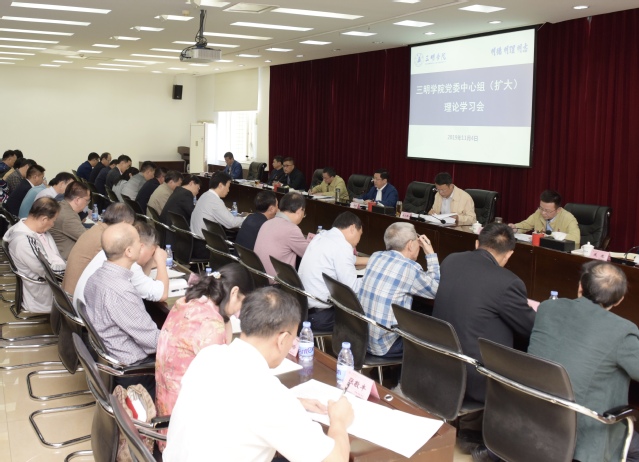 党的十九届四中全会召开后,我校广大师生通过报纸、电视、广播、网络等不同的媒介形式,及时了解党的十九届四中全会内容,领会会议精神。11月4日,校党委结合“不忘初心、牢记使命”主题教育,召开理论学习中心组(扩大)学习会,原原本本地学习了党的十九届四中全会公报和四中全会精神传达提纲。校领导班子和全校副处级以上干部、各党支部书记参加会议。