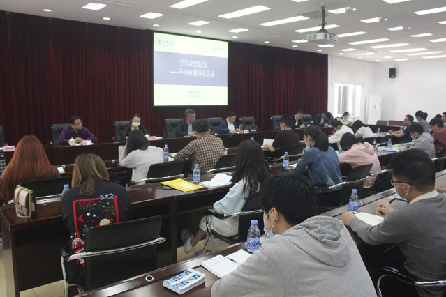 学工部、校团委、教务处、财务处、后勤管理处、图书馆负责人,全体毕业班辅导员参加了会议。
