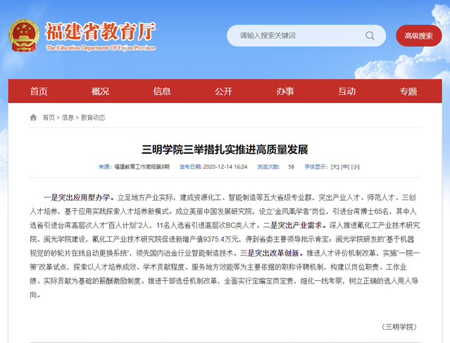 【福建省教育厅】三明学院三举措扎实推进高质量发展