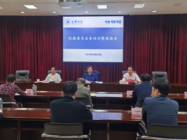 10月28日下午,为进一步提升纪检监察干部的纪法观念和监督能力,校纪委在行政楼八楼会议室召开纪检委员业务培训暨座谈会,就纪检监察法律法规知识和加强监督工作开展培训交流。校纪委书记、监察专员詹学齐出席座谈会,各基层党委(总支)、各教工党支部纪检委员、纪检监察室全体人员共约70人参加业务培训和交流。