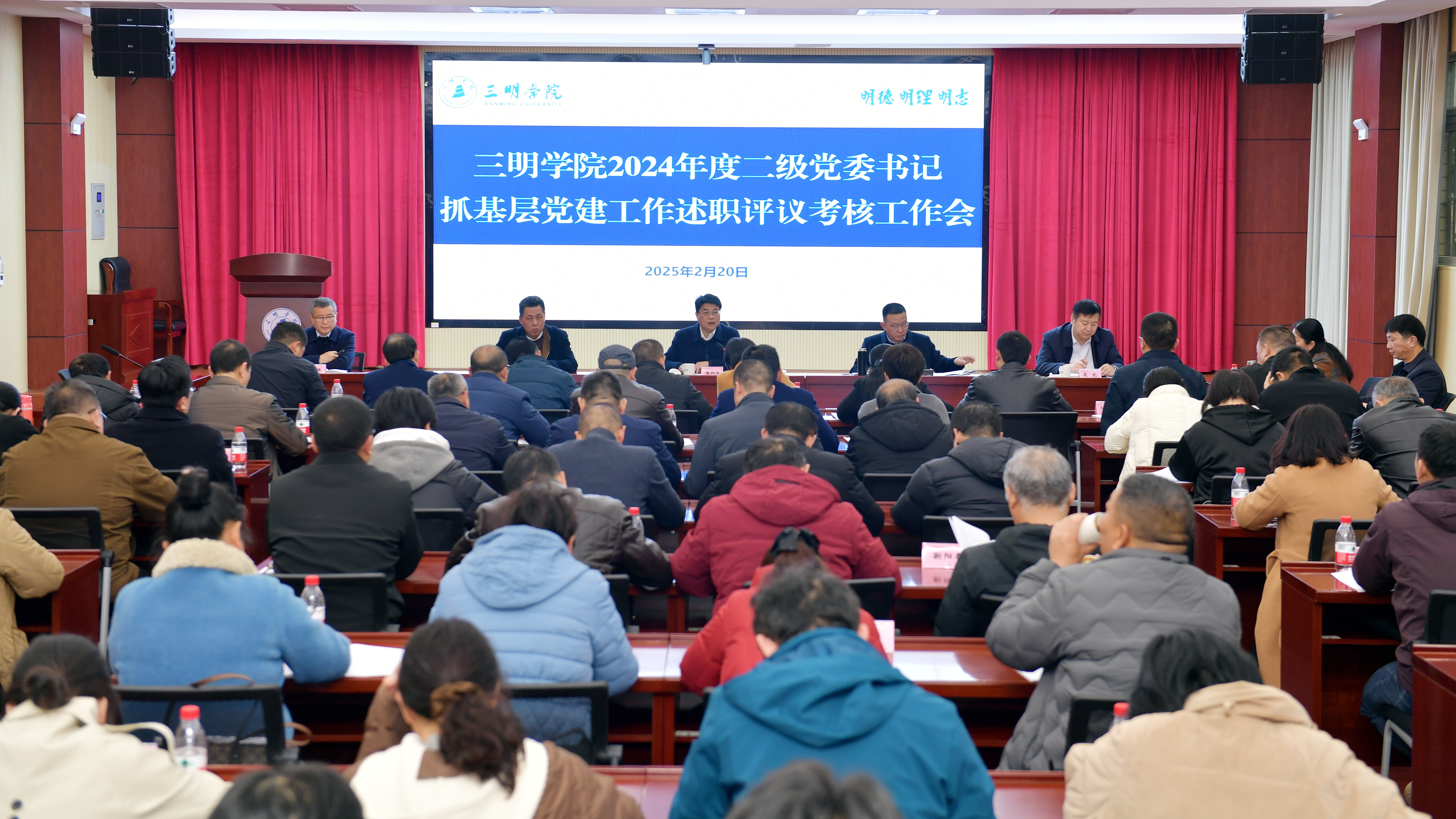 2月20日,三明学院召开2024年度二级党委书记抓基层党建工作述职评议考核会议。全体在家校领导出席会议,校党委书记陈列平作点评讲话,校党委副书记廖景榕主持会议。